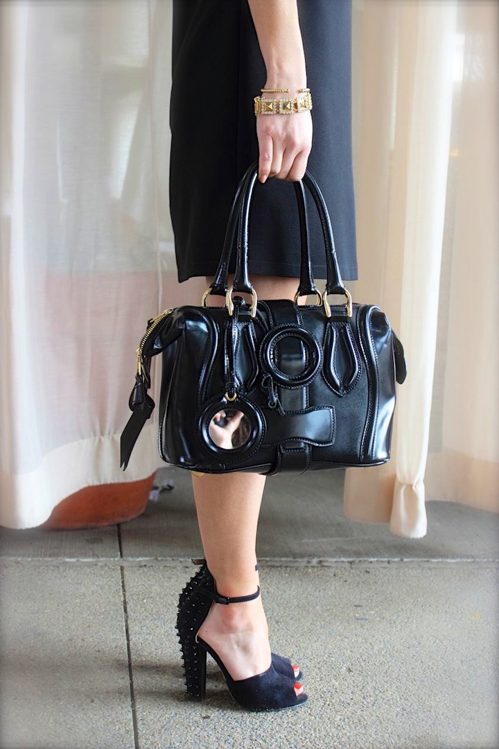 Topshop dress (similar) | Sorrelli bracelet and necklace | Anthropologie bracelet | Zara heels | Balenciaga bag | LF Stores bow